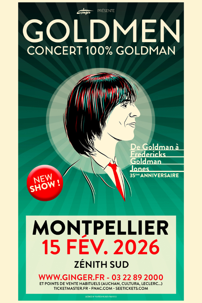Actuellement en tournée événement, rassemblant des centaines de milliers de fans à travers la France, les GOLDMEN seront de retour en 2026 pour un nouveau show 100% tubes, de l’univers de Jean-Jacques GOLDMAN à celui du trio FREDERICKS GOLDMAN JONES.