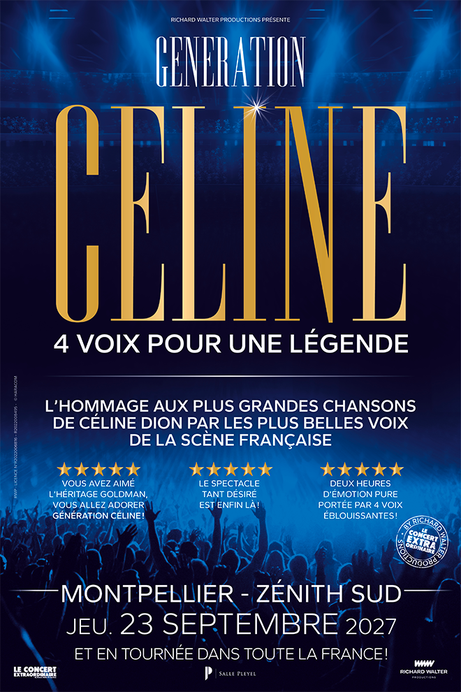 Après l’incroyable succès de L’HÉRITAGE GOLDMAN, LE CONCERT EXTRAORDINAIRE nous offre un nouveau spectacle XXL : GÉNÉRATION CÉLINE !